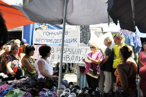 «С тех пор, как г-н Гончаров выкупил ЗАО «Строитель», для предпринимателей, чьи торговые точки расположены по соседству с его предприятием, нормальная торговая деятельность стала практически невозможной, а их жизнь превратилась в сплошной кошмар, - говорится в обращении, которое накануне получили городские СМИ за подписью «Предприниматели и инвалиды-предприниматели с территории ЧП «КАБА». - Этот горе-хозяин создает своим соседям по рынку всевозможные препоны, ставя себя выше других, и забывая о том, что они имеют такие же права собственности, как и он».
