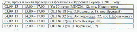 В итоге, было принято решение: в этом году «Здоровый город»-2013 превратится в многоступенчатый праздник, который пройдет на 5 площадках в период со 2 по 7 сентября.