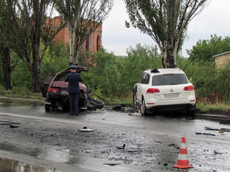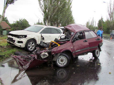 Водитель «Mercedes» рассказал, что по ул. Танкистов две колоны автомобилей двигались в сторону Дружковки, еще две - в сторону Славянска. ВАЗ 99-й модели ехал в сторону Дружковки. В районе магазина «Зустрич» «99-ка» пересекла сплошную двойную линию, выехала на встречную полосу и лоб в лоб столкнулась с микроавтобусом, а затем уже «Touareg» уходил от удара и врезался в дерево.