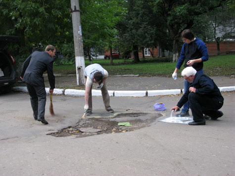 Как выяснилось, художественным оформлением ям, по предложению городских автомобилистов, занимаются представители политической партии ВО "Свобода".