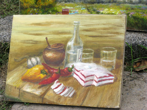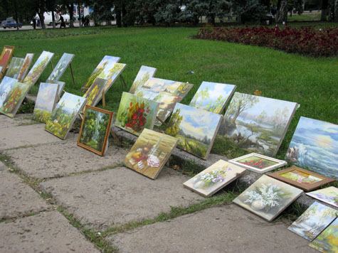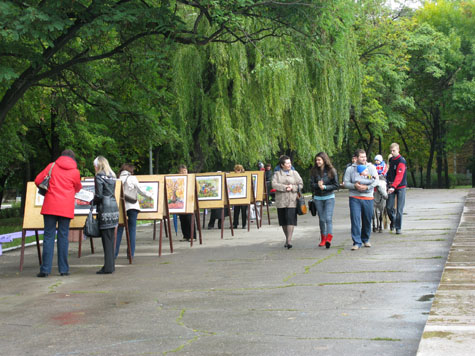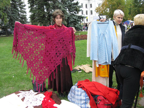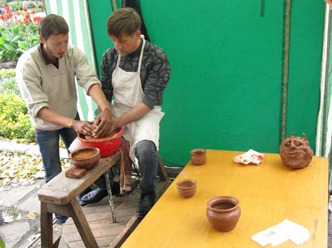 Здесь же появились участники выставки декоративно-прикладного искусства...