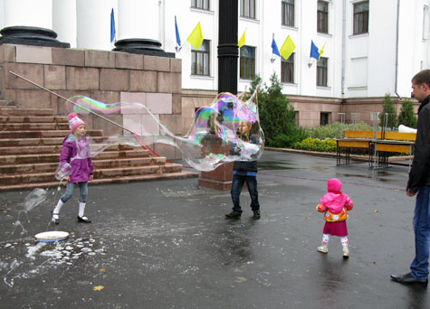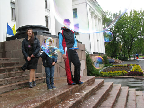 А у самого дворца можно увидеть экспонаты конкурса колясок и попускать мыльные пузыри.