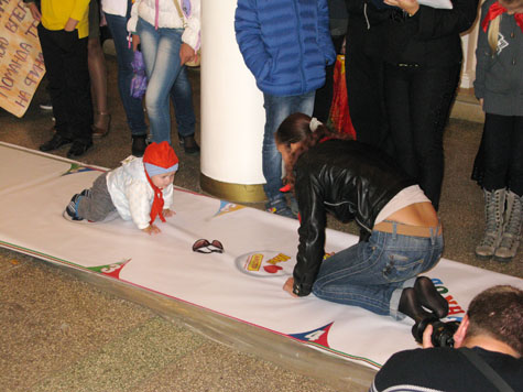Погода заставляет волноваться: то и дело набегают дождевые тучи, поэтому конкурс малышей-ползунков пришлось перенести в здание ДК и Т НКМЗ.