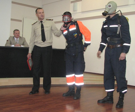 С необычной демонстрации специальной экипировки бойцов Министерства по чрезвычайным ситуациям началось сегодня аппаратное совещание исполкома Краматорского горсовета. Таким вот наглядным образом, начальник местного подразделения МЧС Юрий Майборода и пара его подчиненных решили лично поблагодарить городские власти за материальную поддержку.