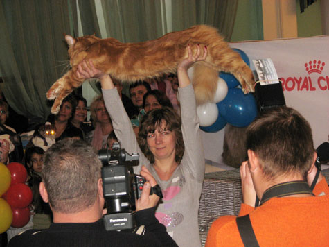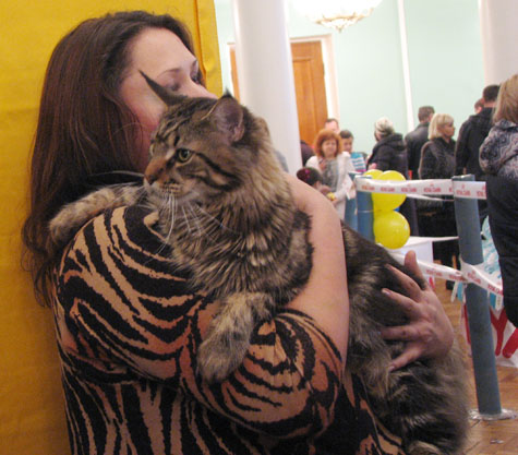 Большим сюрпризом для посетителей нынешней выставки стало большое количество кошек стремительно входящей в моду породы мейн-кун, которые отличаются очень своеобразной окраской, ушами с кисточками, хищным видом и мощными формами. Кот-гигант мейн-кун по кличке Афанасий стал подлинной сенсацией выставки: