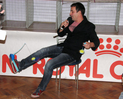 А в 16 часов воскресенья состоится благотворительный лотерейный розыгрыш котенка породы шотландский страйт по кличке Оскар. Средства от аукциона пойдут в помощь бездомным животным, находящимся под опекой Общества защиты животных "Друг". В ожидании розыгрыша, шоумен Эд Близнюк решил повеселить публику кошачьими игрушками: