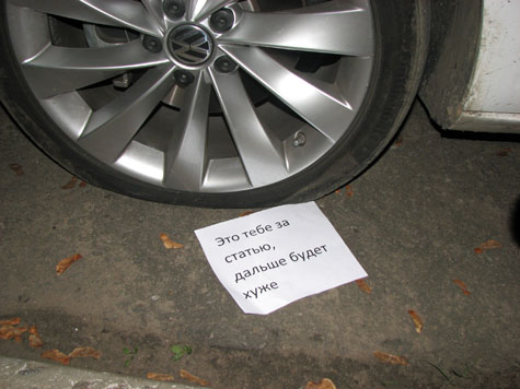 А под одном из "дворников" на лобовом стекле, а также под правым передним колесом, были обнаружены отпечатанные на принтере записки идентичного содержания: "Это тебе за статью, дальше будет хуже". Так что "хулиганка" здесь явно ни причем.