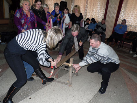 Гости, под аплодисменты зрителей, с огромным удовольствием принимали участие в театрализованных обрядах, просматривали видеоролики с записями коллектива.