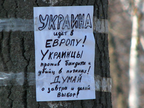 Сегодня на улице Социалистической, в самом центре Краматорска, появились написанные от руки листовки политического содержания, автор(ы) которых высказывают свое мнение о происходящих в Киеве событиях.
