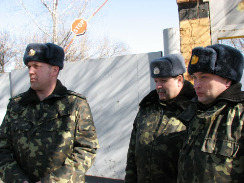 - Если сравнивать с тем, что происходит в Крыму - у нас спокойно, - говорит командир части Виталий Пилипенко (на фото слева). - Несем службу, как обычно, никаких эксцессов не происходит, никто сюда ни с какой агитацией не приезжал. Оборудование части работает в штатном режиме. Все действия части осуществляются в соответствии с распоряжениями командования.