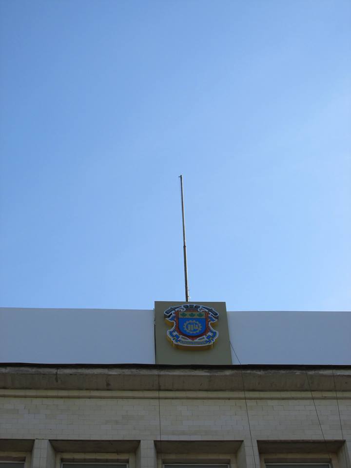 Краматорск, 5 июля 2014 года, 17 часов. Пользователи сети Фейсбук опубликовали фотографию опустевшего флагштока над зданием горисполкома Краматорска.