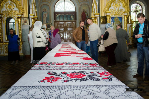 В Краматорске местные мастерицы вышивки завершили работу над созданием огромного рушника, который, благодаря своим размерам, попал в Книгу рекордов Гиннеса.