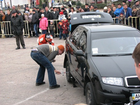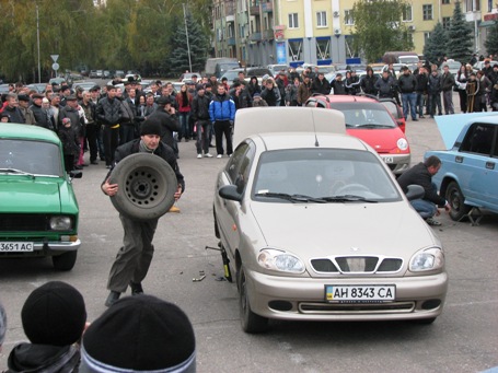 Участником соревнований и конкурсов на празднике может стать практически любой автомобилист Краматорска. На площади соревнуются в точности остановки машины и заезду в «гараж» на время, в скорости смены колеса и в аккуратности вождения. Как всегда, самым зрелищным конкурсом стало состязание силачей, который тащили за собой машину.