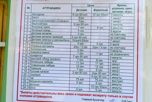 Вот такой ценник вывешен в парке "Юбилейный". Пользователи краматорских групп в Facebook комментируют его не без юмора: