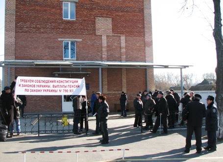 Сегодня утром несколько десятков граждан из числа ликвидаторов аварии на Чернобыльской АЭС, согласно заранее поданному в органы местной власти уведомлению, начали пикетирование Краматорского отделения Пенсионного фонда Украины, протестуя против резкого сокращения положенных им выплат. Большинству из них пришлось добираться к зданию Пенсионного фонда пешком, так как кто-то заранее позаботился о закрытии автотранспортного движения по путепроводу, перегородив дорогу милиционерами, экипированными в бронежилеты и каски, и вооруженными дубинками.