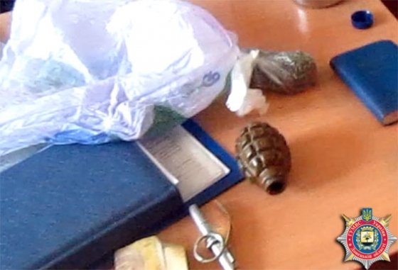 Около 10 часов утра во время патрулирования города сотрудники милиции составили протокол об административном правонарушении по ст. 178 «Распитие пива, алкогольных, слабоалкогольных напитков в запрещенных законом местах» Кодекса Украины об административных правонарушениях в отношении 55-летнего краматорчанина. В ходе личного досмотра у него были обнаружены пакет с веществом растительного происхождения, а также граната РГД и запал. Изъятое направлено на экспертизу.