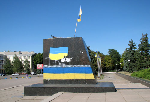 Вряд ли в Краматорске можно найти хоть одного человека, которому нравится нынешнее главное "украшение" центральной площади города в виде торчащего постамента, оставшегося от памятника Владимиру Ульянову-Ленину. Ни изображенные на постаменте украинский герб, ни флаг сверху убожества не украшают: вид предурацкий.
