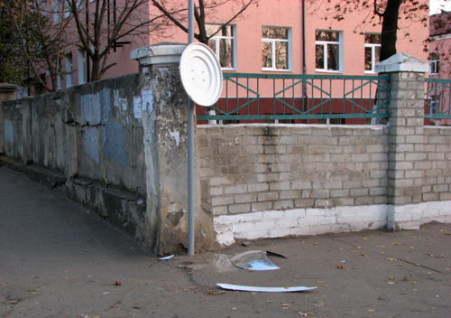 Вот такой вид имеет зеркало с утра 8 ноября. Неизвестные вандалы уничтожили приспособление, посчитав своим приматовским умом, что "так будет лучше".