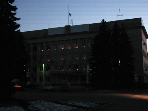 Потрясающее зрелище представляло собой сегодня вечером здание горисполкома Краматорска, где в каждом окне горела свеча в память о безвинных жертвах Голодомора, устроенного в Украине большевиками в 30-х годах прошлого века.