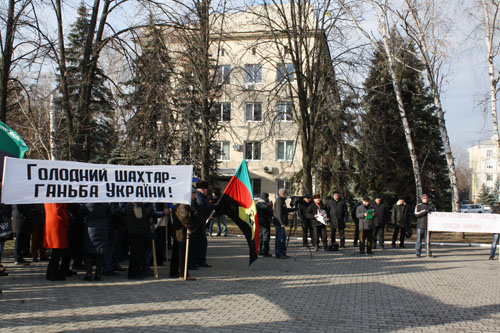 Шахтеры развернули пикет у здания горисполкома. Основное их требования - поддержка отрасли со стороны государства и своевременная выплата заработной платы. «В проекте государственного бюджета на 2016 год не предусмотрена дотация шахтерам. Получается, что стране не нужен уголь? – задал вопрос на импровизированном митинге профорг участка шахты им. Стаханова Ярослав Крысь. – Неужели выгоднее покупать уголь в Африке?». По словам шахтеров, задолженность по зарплате «тянется» с середины сентября. «Нам выплачивают по 20-30 процентов. На эти деньги прожить невозможно, нам детей содержать не на что», - жалуются шахтеры.