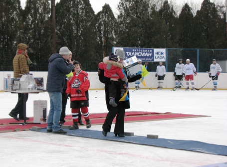 Правда, уж очень холодно и стыло, поэтому зрителей на катке не много. Зато у тех, кто самый крепкий, была возможность посмотреть на культурно-танцевальную программу, выступления фигуристов, а также выиграть кучу ценных призов и поездку на профессиональный хоккейный матч в Донецк. А прямо сейчас на катке проходит встреча хоккейных команд «Квадрат» и «Легион».