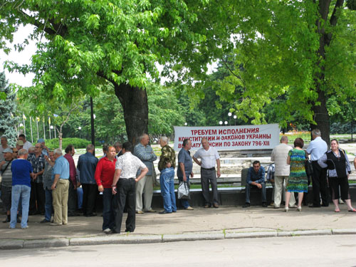 Сегодня, 15 июня, под зданием горисполкома Краматорска/облгосадминистрации появился пикет, организованный "чернобыльцами" из нескольких городов Донецкой области. Основное требование пикетчиков - соблюдение действующих законов по защите прав "чернобыльцев" и недопущение сокращения списка действующих льгот для этой группы населения.