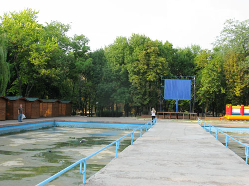 Особую же пикантность зрелищу придает зачем-то оставленный незакрашенным фрагмент старой рекламы с изображением бултыхающихся в каком-то водоеме детей с заграничной надписью "New". Что сие может означать - понять сложно, но выглядит это как бы намеком на приглашение окунуться в фонтане, других версий у меня, например, нет.