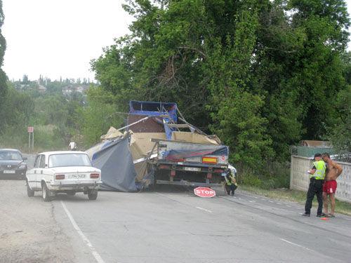 - Машину накренило на повороте, а тут еще эта вомоина в асфальте, так что крен получился запредельный, - сетует водитель.