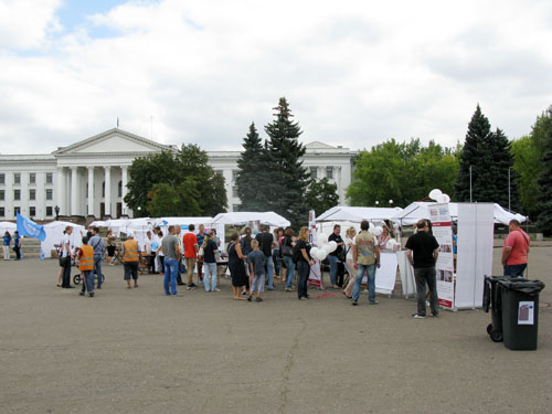 На центральной площади Краматорска прямо сейчас завершаются подготовительные работы к проведению Всемирного дня гуманитарной помощи, старт мероприятия намечен на 14 часов.