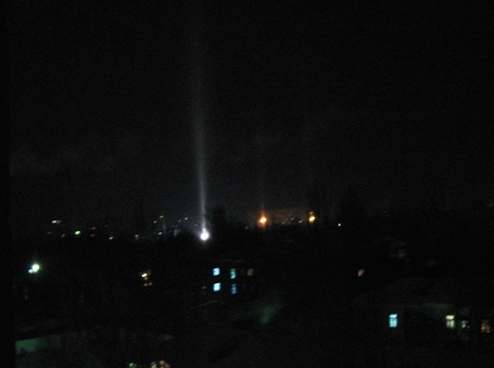 По ночам жители Краматорска продолжают наблюдать редкое для наших мест природное явление: световые столбы. Вертикально вверх от ярких источников света, высоко в небо уходят узкие полосы света. Красиво!