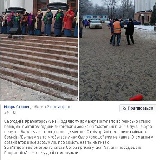 Заместитель главы Донецкой облгосадминистрации Игорь Стокоз опубликовал в Facebook сегодня, 24 декабря, весьма резкий текст касательно проходящей в центре Краматорска Новогодней ярмарки.