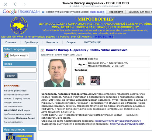 Утром 11 марта на всеукраинском сайте "Миротворец", содержащем постоянно пополняемую базу данных о лицах, поддерживающих терроризм, появилось хорошо известное всему Краматорску имя: Виктор Андреевич Панков.