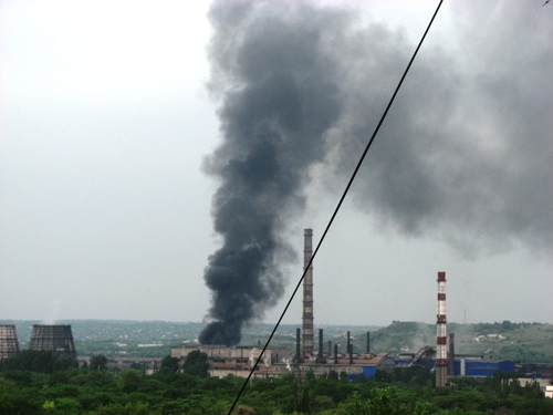 Над Новокраматорским машиностроительным заводом сегодня утром можно было наблюдать гигантские клубы черного дыма, видимые с любой точки города.