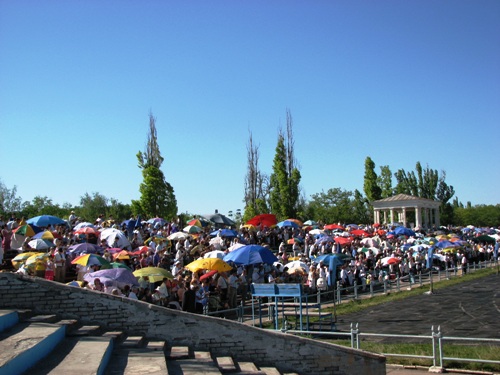 Сегодня в Краматорске состоялся ежегодный региональный конгресс Свидетелей Иеговы. Мероприятие прошло с размахом: для своих нужд сектанты на весь день арендовали стадион «Блюминг».