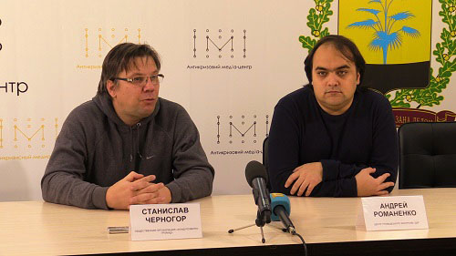 В Антикризисном медиа-центре Краматорска 24 октября прошло обсуждение будущей реконструкции парка "Юбилейный", инициаторами чего выступили глава общественной организации "Фонд розвитку громади" Станислав Черногор и координатор центра гражданского контроля "Дій" Андрей Романенко (на фото).