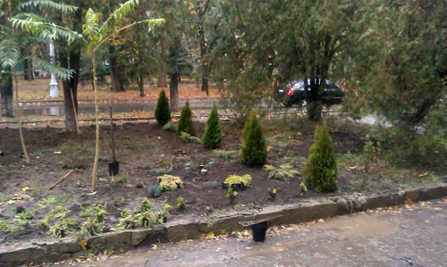 Быдлизм в Краматорске - неистребим. В городе снова украли декоративные туи, которые высадили буквально на днях, 28 октября.