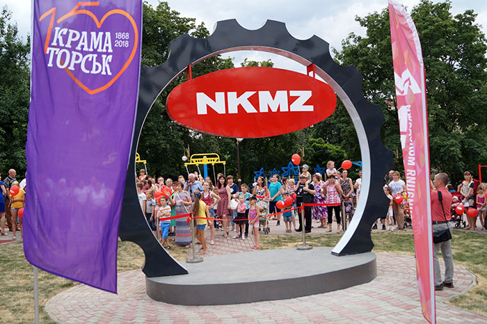 Главная новость субботы, 23 июня в Краматорске - это официальное открытие большого спортивно-детского сквера во дворе дома № 38 по улице Дворцовой (Китайская стена) под открытым небом, который построил для горожан Новокраматорский машиностроительный завод.