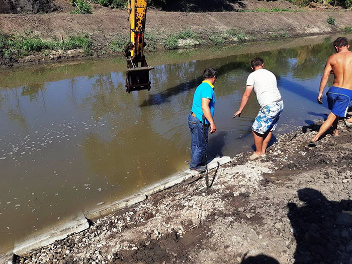Фотофакт: в Краматорске начали укреплять берега расчищенной речки 2-я Беленькая