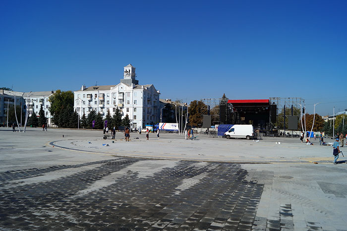 Утром 22 сентября центральная площадь Краматорска предстала глазам прохожих и любопытствующих в совершенно ином виде. По сути, можно смело заявить, что к 17 часам, когда здесь начнутся концерт и массовые гуляния граждан, незаконченный объект стройки будет полностью соответствовать требованиям безопасности и санитарной чистоты.
