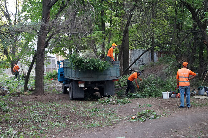 О начале работ по очистке посадки в тот же день сообщила и пресс-служба горсовета, заявив: "...вивезено сміття та зібрано кг використаних шприців". Что имеется в виду под термином "кг" - не совсем ясно, а вот тот же текст, опубликованный в Facebook на страничке "Краматорське самоврядування", содержит более расширенную информацию: "... вивезено 63 м 3 сміття та зібрано 42 кг використаних шприців".