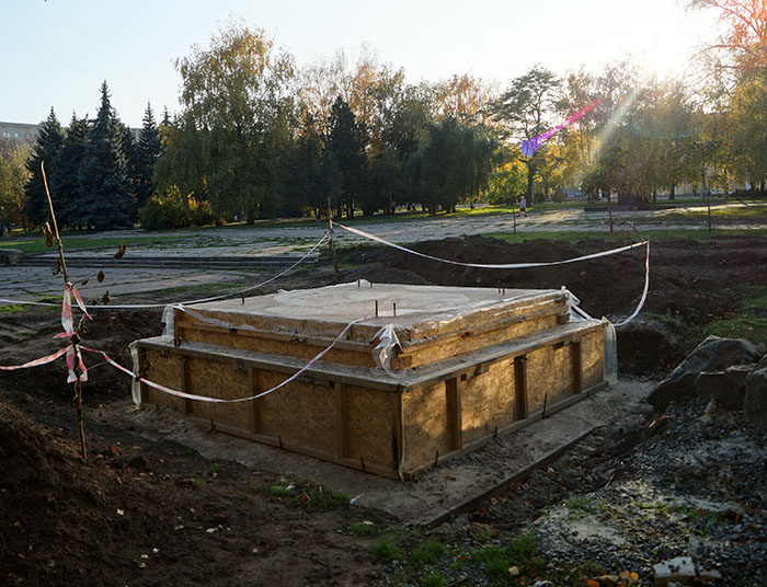 А время - шло. В итоге, на сегодняшний день почти полностью завершены работы по сооружению фундамента будущего памятника (в будущем постамент будет сложен из черного гранита). А к строительству самого памятника, судя по всему, приступят весной будущего года, когда установятся подходящие погодные условия.