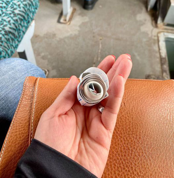 Бере, нарешті, рулон квитків і витягає з середини шмат. Типу «подавись».
