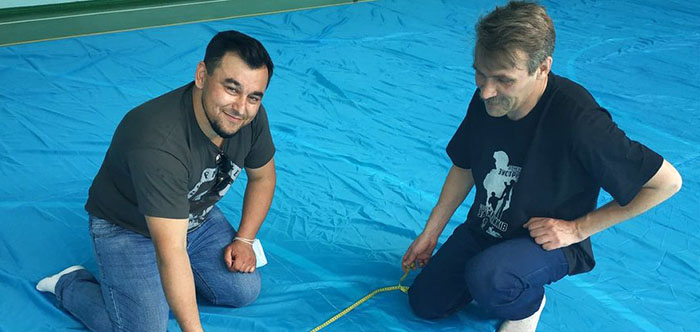 "В кримськотатарському прапорі символ буде у куті, але для того, щоб його було видно чітко над чистим небом Криму, ми вирішили зробити велику тамгу. Я хочу цим підтримати наших кримчан, які зараз, поки ми знаходимось тут, в мирному Донбасі, приходять під суди, відстоюють права своїх співвітчизників, відстоюють права України фактично", - розповідає експолітв’язень Кремля, ініціатор ідеї Ісмаїл Рамазанов.