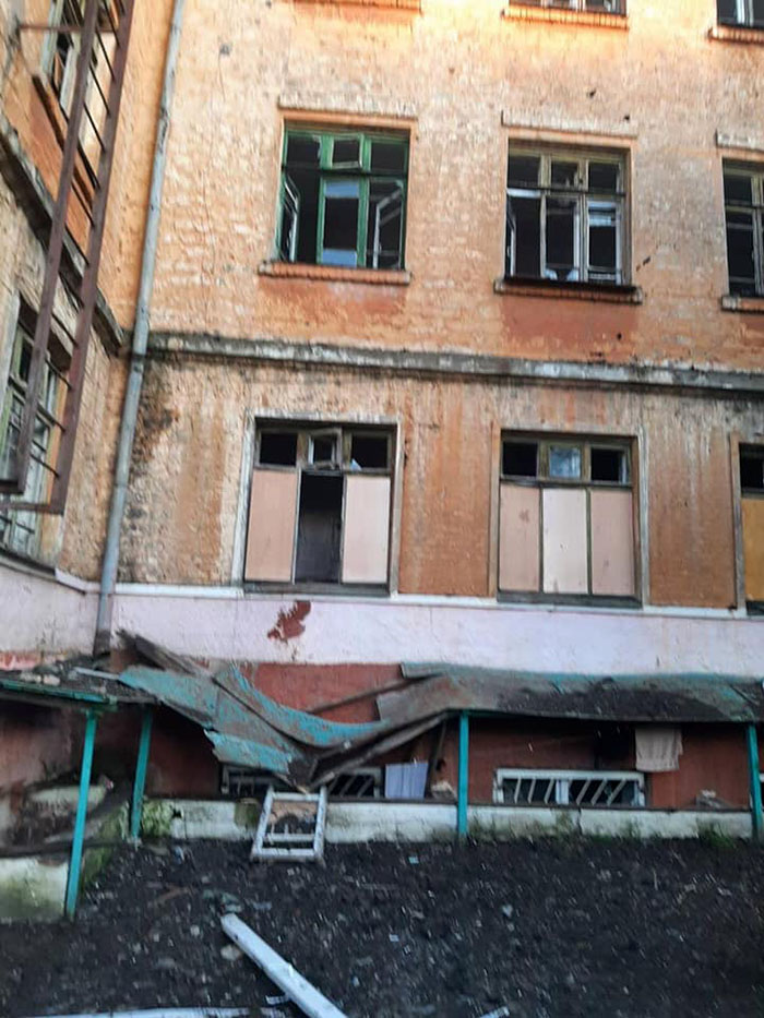 В результаті обстрілу було поранено сторожа школи, життя його поза небезпекою.