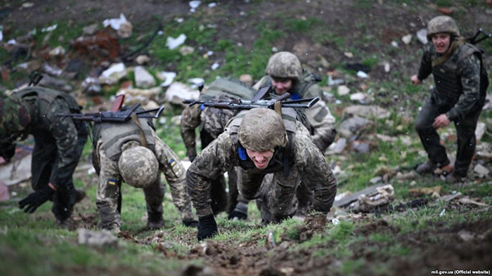 Подолання смуги перешкод, щоб не запанікувати під обстрілом. Або обкатка танками — лежати в окопі, поки зверху проїжджає бронетехніка. Саме так виглядала найбільш видовищна частина армійської антистресової бойової підготовки до війни в Україні.