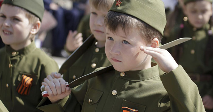 Соревнования по любви к Родине в некоторых регионах стали приобретать гротескные формы. Впрочем, это уже мало кого удивляет. В столице Чувашии, Чебоксарах, 9 Мая на местной Красной площади пройдет парад дошколят, одетых в военную форму. Такое же событие уже прошло в Ростове-на-Дону: там детсадовцы в камуфляже и краповых беретах прокатились на самокатах.