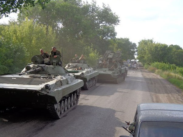 Первый ЗРК «Стрела-10» по дороге в Славянск в российской колонне снабжения
