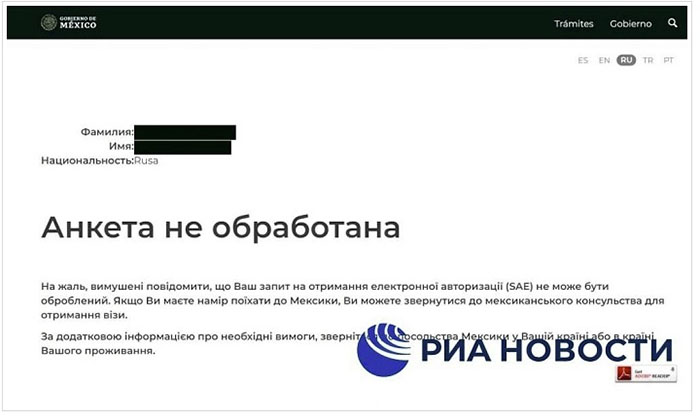 Россияне, пытающиеся оформить электронную визу в Мексику на сайте посольства, получают отказ в оказании услуги на украинском языке.