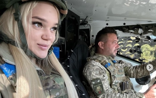 Дівчина також зробила серію фото у камуфляжі та бронижелеті. Після чого заявила, що відправилась у село Мала Токмачка, що за 6 км від "нуля".