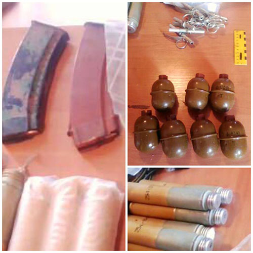 В частности, изъяты 7 гранат РГД-5, 8 запалов к ним, патроны калибром 5.45 мм и 2 магазина к автомату Калашникова.